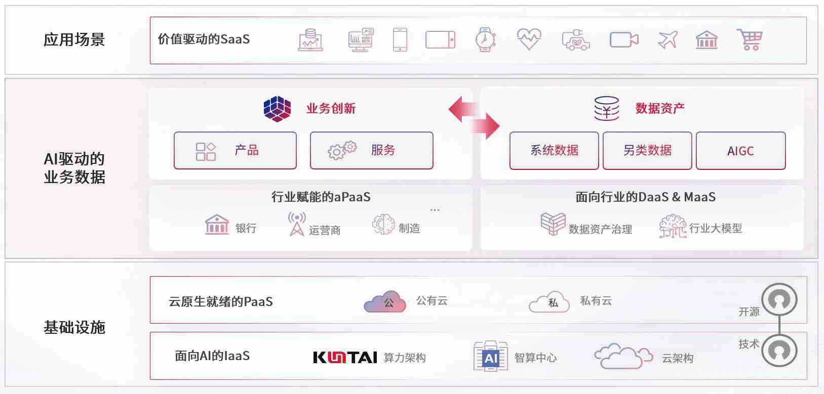 数字时代,,围绕企业数字化转型的关键要素,,,EBpay数码开创性的提出数云融合战略和技术体系框架,,着力在云原生、、、数字原生、、、AI原生和信创产业上架构产品和服务能力,,,为处在不同数字化转型阶段的快消零售、、汽车、、、、金融、、医疗、、政企、、教育、、、、运营商等行业客户提供泛在的敏捷IT能力和融合的数据驱动能力,,构建跨界融合创新的数字业务场景和新业务模式,,,,助力企业级客户建立面向未来的核心能力和竞争优势,,,全面推动社会的数字化、、、、智能化转型升级。。