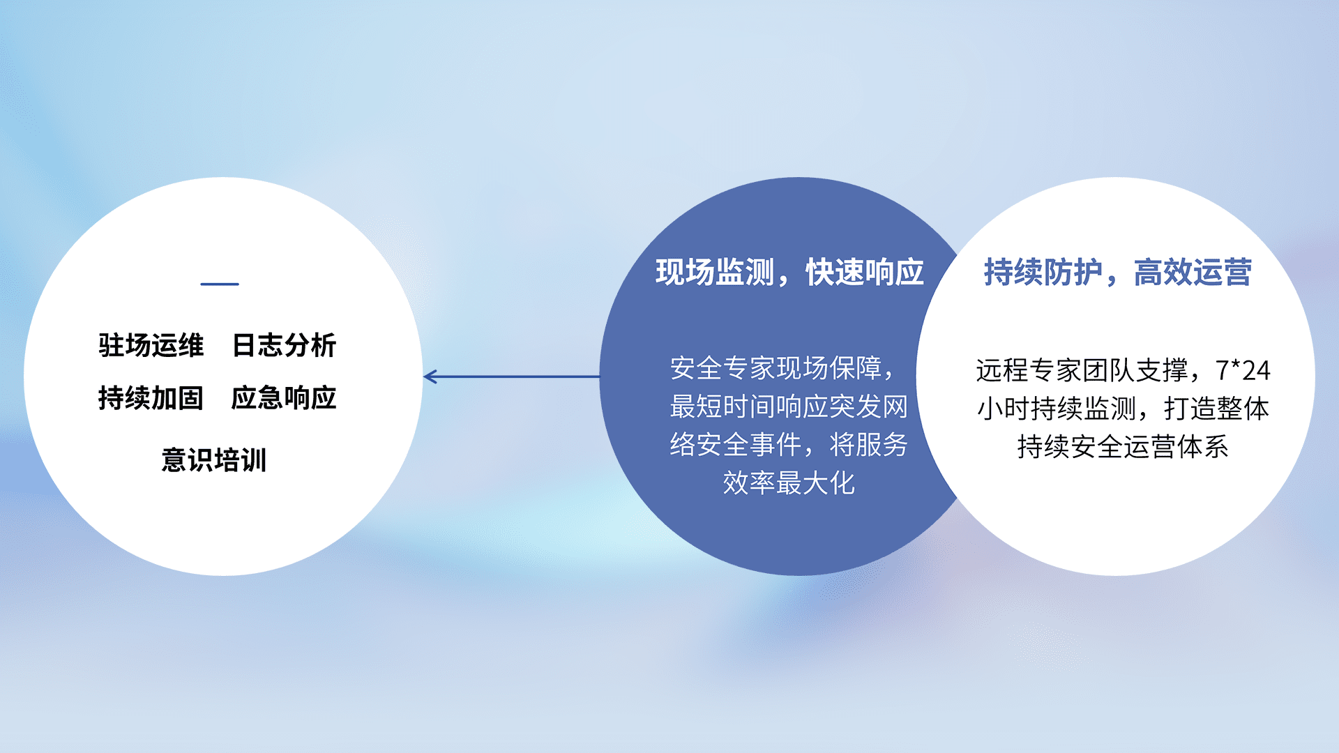 针对客户行业特性,,以专业的安全服务+多厂商联合解决方案提供专属的一站式安全管理服务,,,,帮助客户全面感知网络空间威胁,,基于识别、、、、检测、、分析、、、、防护、、、监测、、、、响应的服务理论模型,,,,从方案咨询、、集成交付、、、、评估验证、、优化加固、、运维运营,,致力于为客户提供完整的闭环管理式安全服务。。。以实战经验为客户打造高抵御风险的安全体系,,,帮助客户发现威胁、、对抗威胁、、、、处置威胁,,不断积累安全对抗能力,,,持续保障数字化安全。。